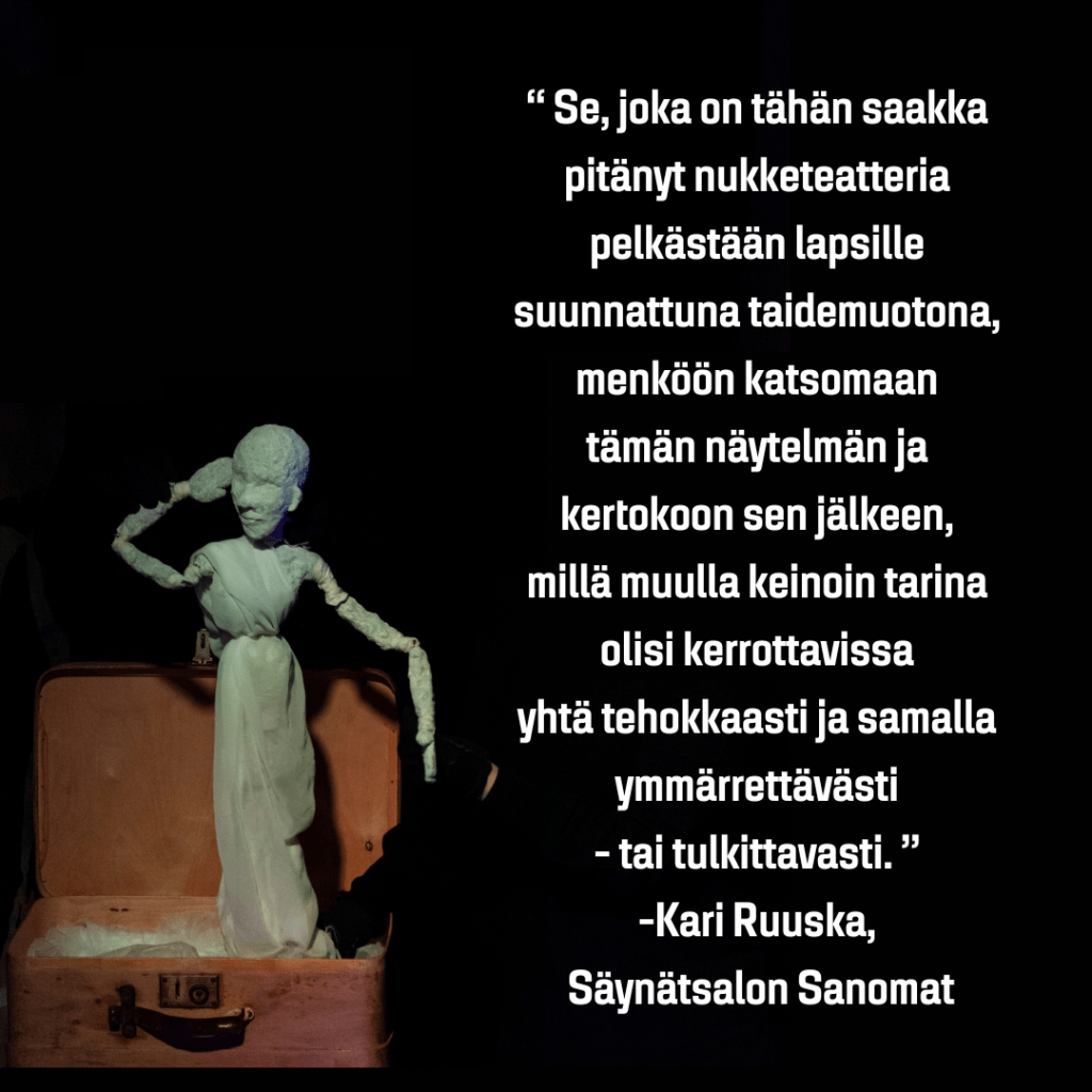 Ensi-iltansa toukokuussa 2024 ja suuren suosion saanut Kerran minäkin kävin täällä- nykynukketeatteriesityksen yleisö on sanonut mm. näin: